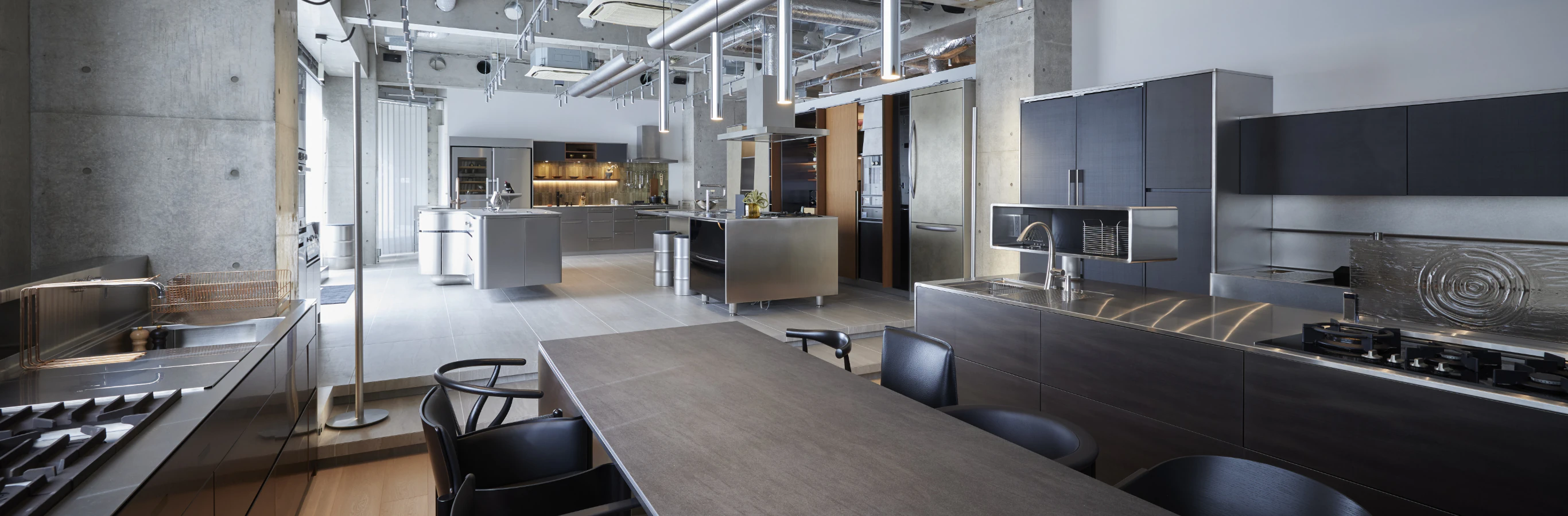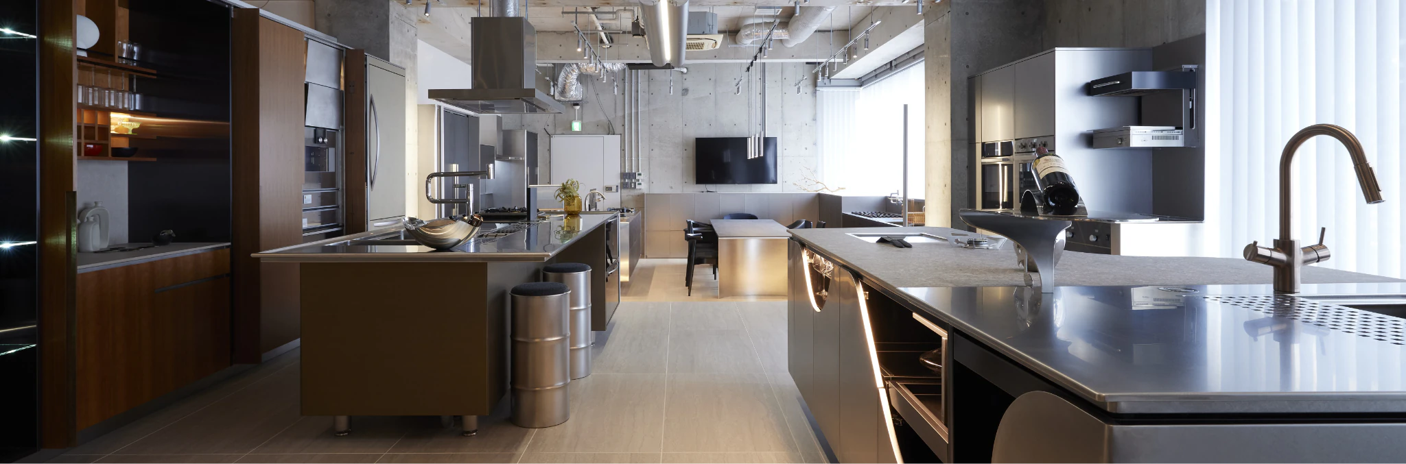 東京・南青山。 研ぎ澄まされた美の奥に、想いを宿したキッチンの数々。 ここは、オーダーメイドキッチンブランド、 MEISDELのショールーム「MEISDEL Kitchen Gallery」。 長年培ってきたステンレス加工技術から生まれる、高い機能性とデザイン性。 一点ずつ実物を目にして、触れて、その品質を実感できる空間です。