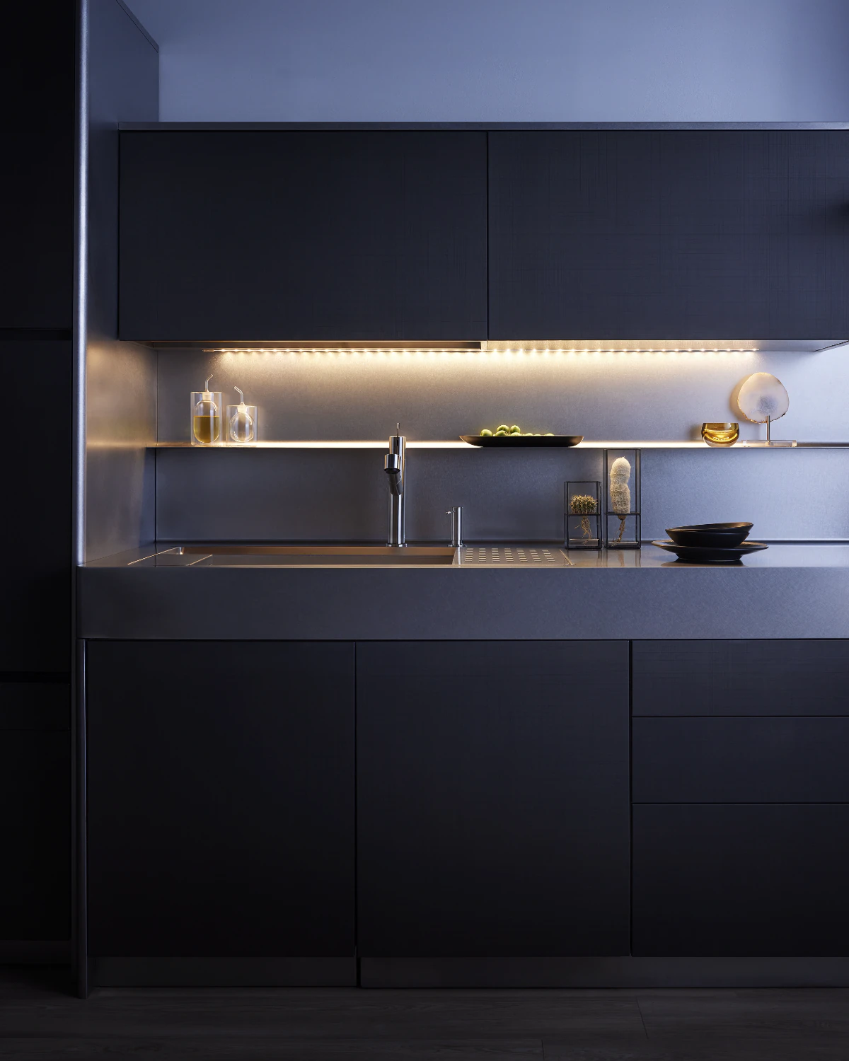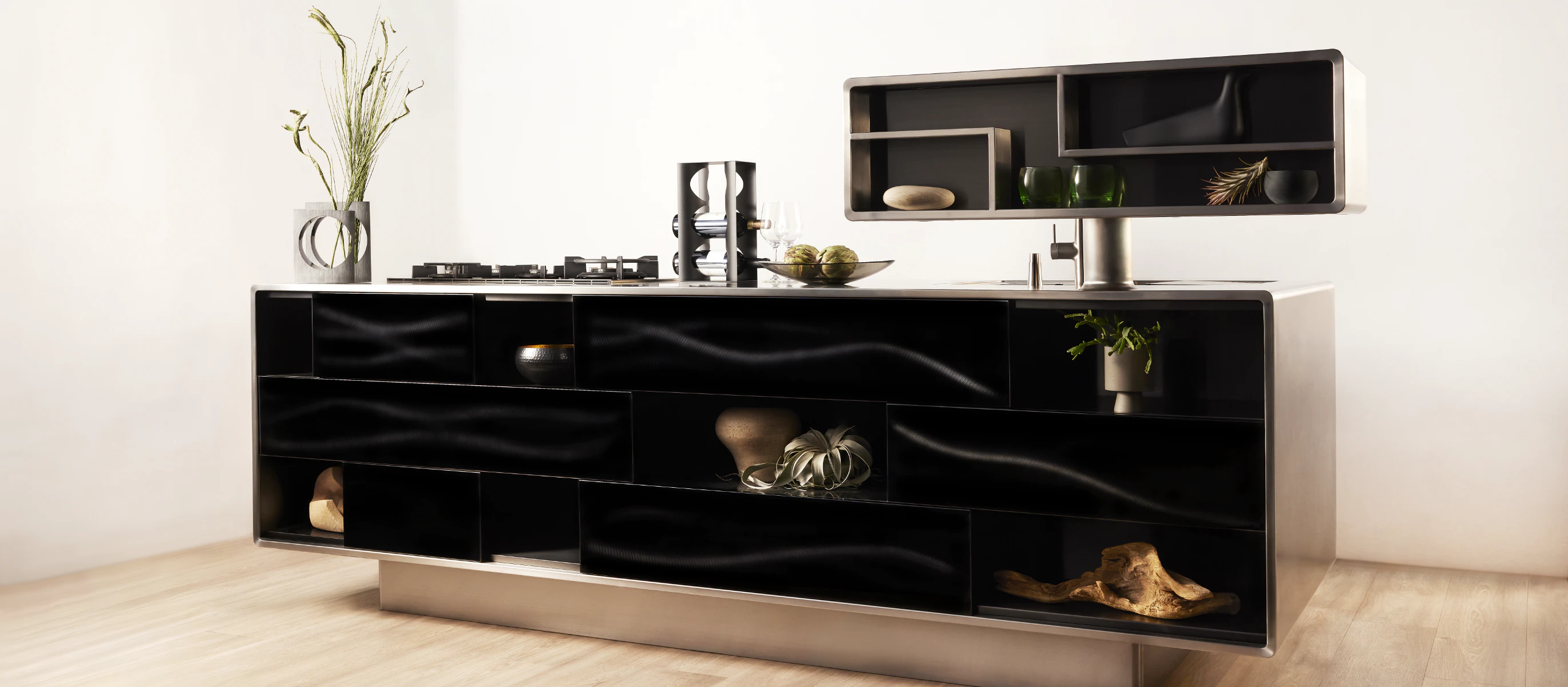 MEIDSELが提供するのは、 異なる価値観を持つ一人ひとりにとっての 新しい豊かさ。 そこに、業務用・家庭用という垣根はなく、 ボーダレスで、パーソナル。 ステンレスという素材の可能性、 素材の魅力を引き出す表現の可能性を追求して、 オーナー自身の思い描く未来が細やかに叶えられた ニューラグジュアリーキッチンを実現します。
